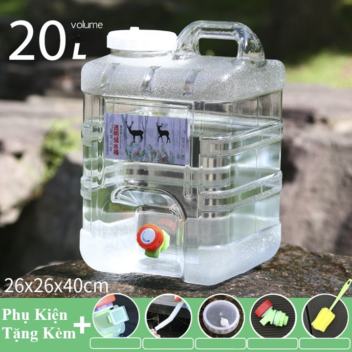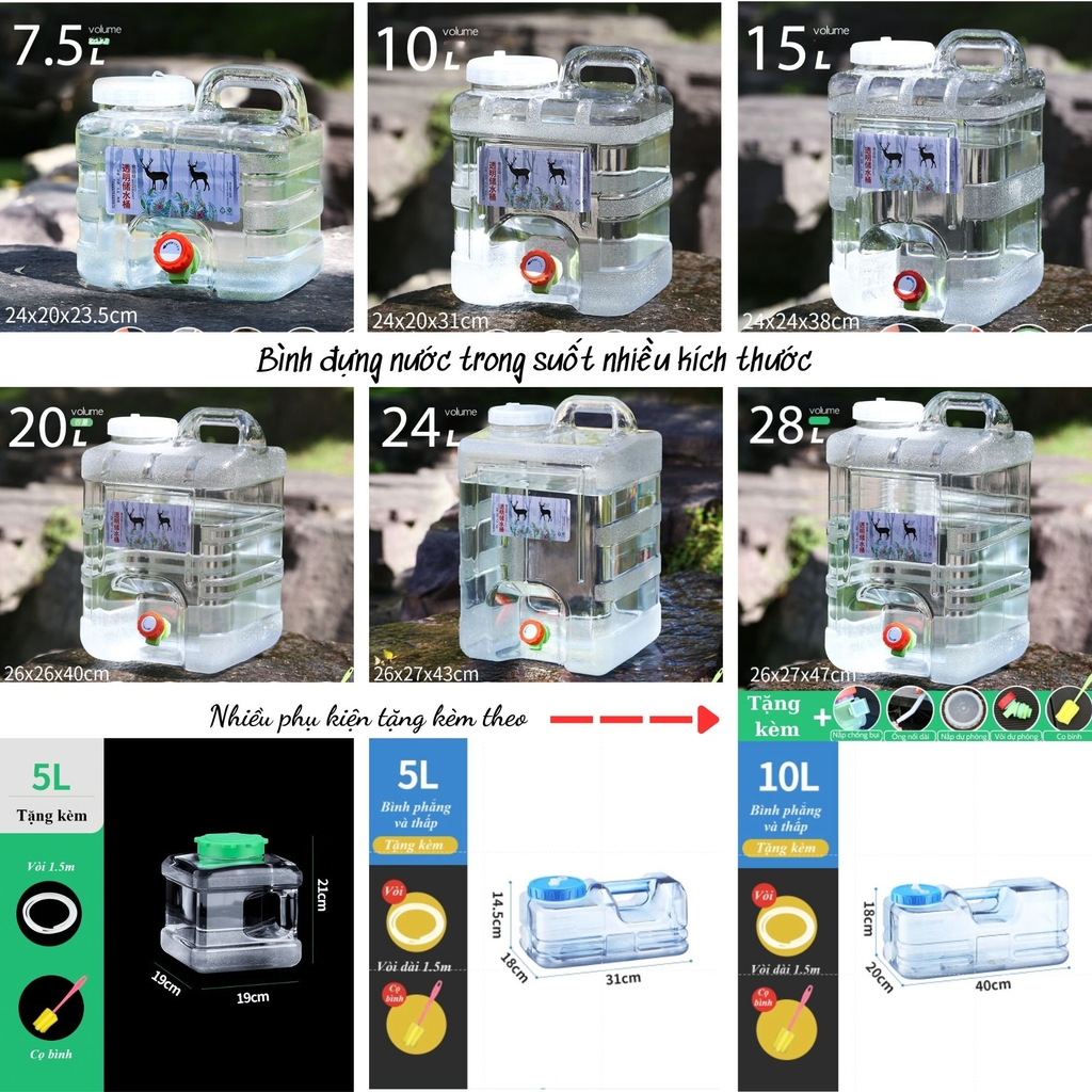 - Tên sản phẩm: Bình đựng nước trong suốt 5L/7L/10L/15L/20L/24L/28L can đựng nước dã ngoại tặng vòi dự phòng nắp đậy ống nối dài cọ bình