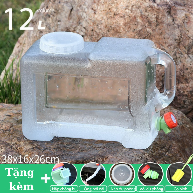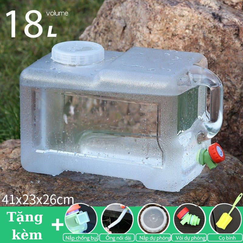 Bình đựng nước trong suốt 5L/7L/10L/15L/20L/24L/28L can đựng nước dã ngoại tặng vòi dự phòng nắp đậy ống nối dài cọ bình