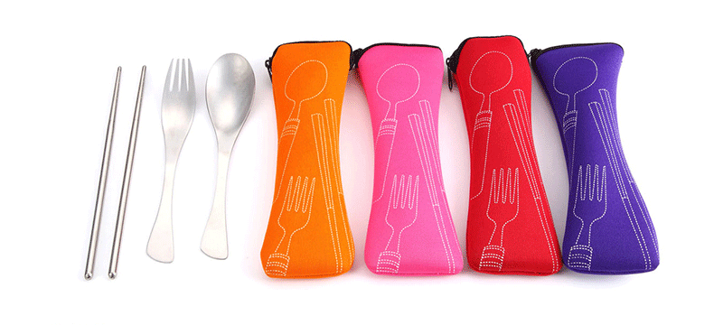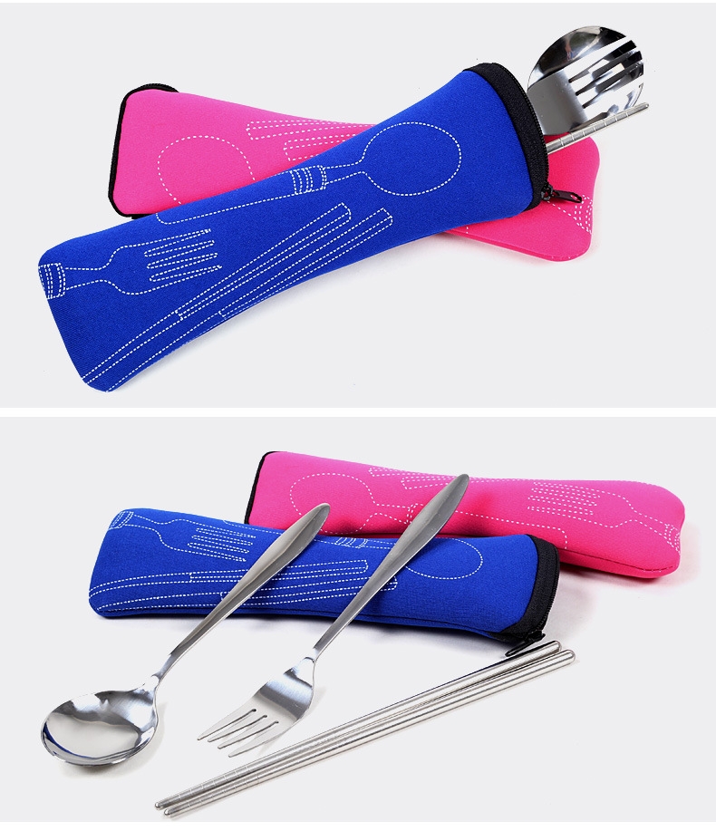 Bộ đũa thìa dĩa inox có túi đựng gọn nhẹ tiện dụng cho việc ăn uống cắm trại, du lịch, nhà bếp túi đựng