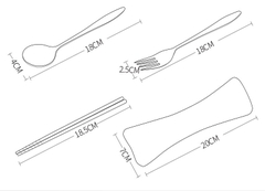 - Kích thước: Chiều dài đũa 18,5cm, dĩa là 18cm và thìa là 18 cm.