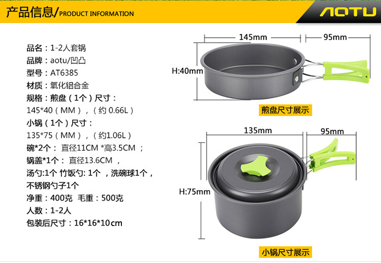 Thông tin sản phẩm: Bộ Nồi/Chảo Mini Nấu Ăn Du Lịch Cắm Trại Dã Ngoại 07 Món Tiện ích AoTu AT6385