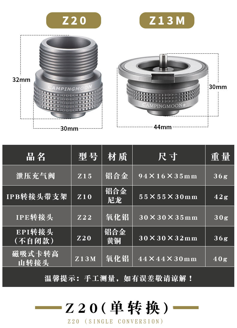 - Z20: chuyển đổi dùn cho Lò nướng, súng phun, bếp ga tích hợp, bếp ga chia đôi và lò sưởi sử dụng khí propan ban đầu có thể được chuyển đổi thành khí phẳng.