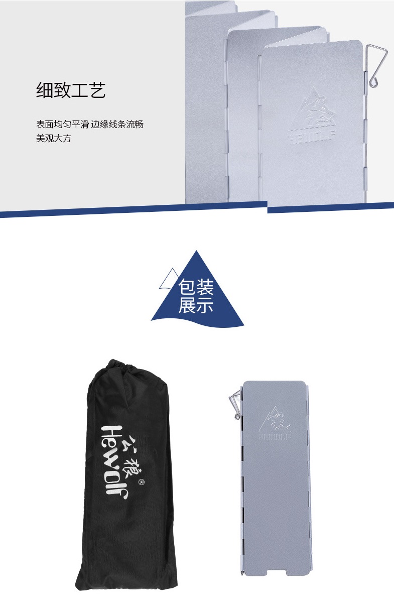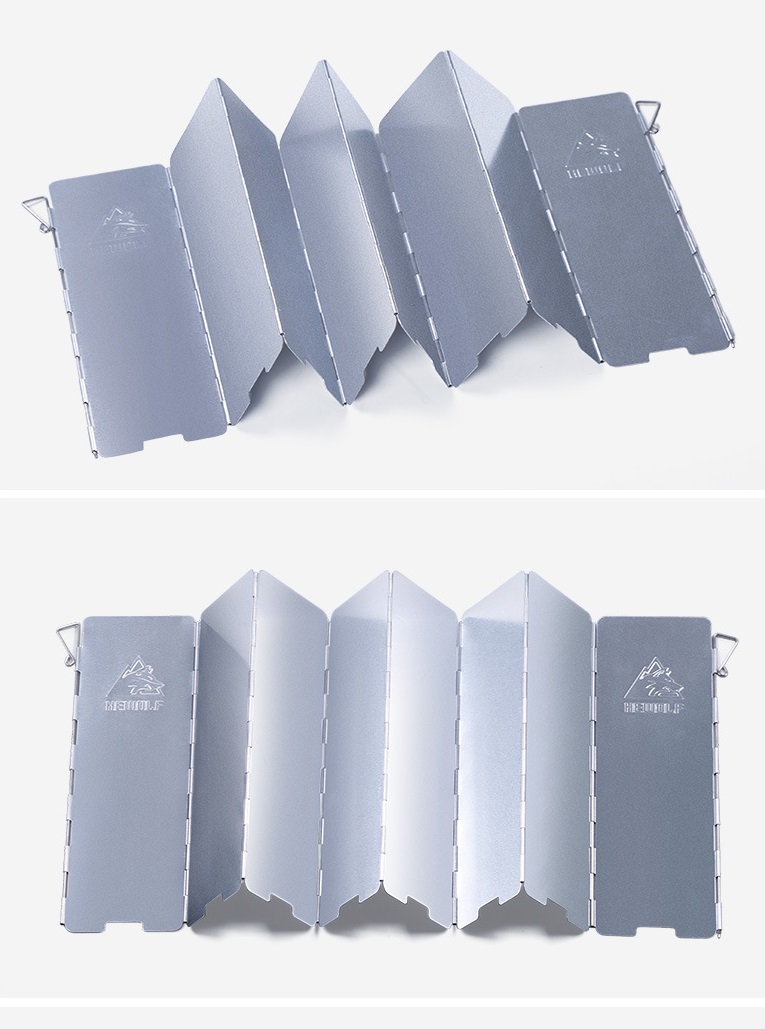 Tấm chắn gió Hewolf được làm bằng hợp kim nhôm có trọng lượng nhẹ, độ bề cao, được thiết kế gấp gọn thành 8 tấm nhỏ gọn, trọng lượng nhẹ, dễ dàng vệ sinh, không bị gỉ, phù hợp khi sử dụng các loại bếp cồn, hoặc bếp gas mini trong các chuyến dã ngoại ngoài trời.