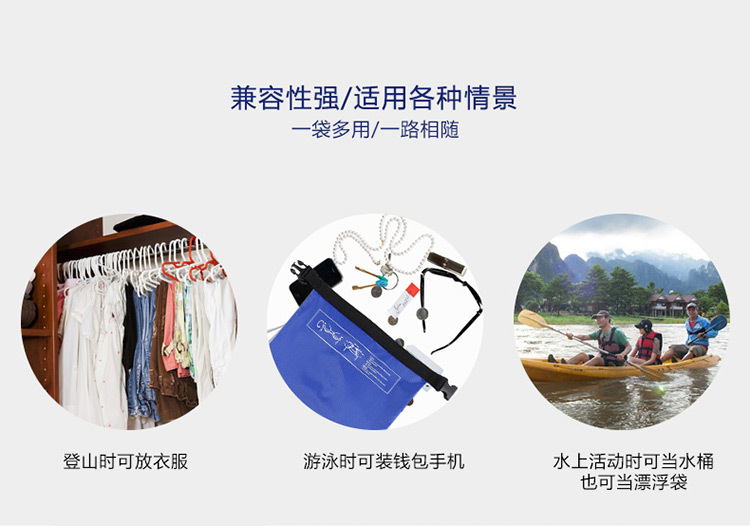 5. Công dụng đa dạng: có thể đựng quần áo leo núi, có thể làm ba lô, dung tích lớn có thể làm túi đựng đồ di động ngoài trời, có thể dùng làm xô, có thể đựng đồ dùng cá nhân khi bị trôi dạt,bảo vệ vật có giá trị khỏi ẩm ướt, và cũng có thể được sử dụng như túi lưu trữ ở nhà, rất hữu ích.
