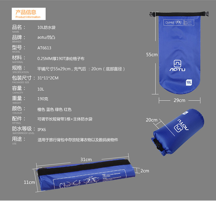 Mục đích: 10L thích hợp để đựng quần áo nhẹ và các đồ vật kỹ thuật số trong ba lô du lịch, làm phao bơi